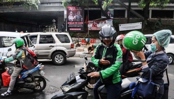 Ojek-motorrijder van Grab – © Kontan/ Fransiskus Simbolon (industri.kontan.co.id)