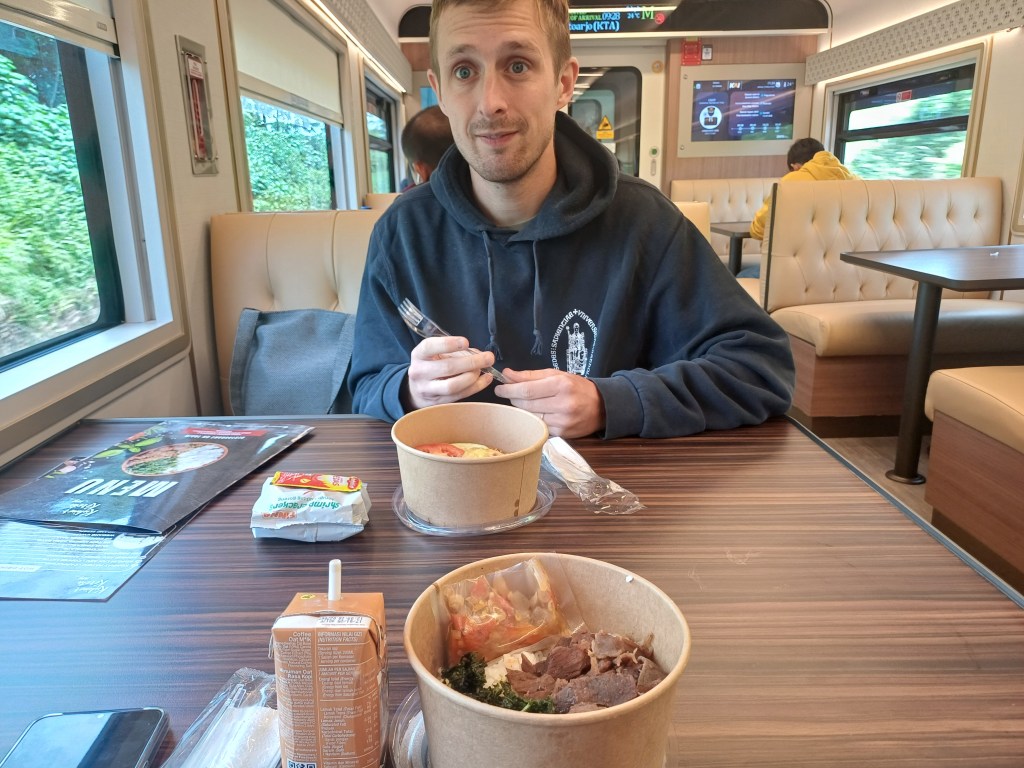 Je kan ook een duurder luxetreinticket nemen voor ongeveer het dubbele van de prijs van een executive ticket. Voor deze duurdere prijs krijg je echter heel wat extra comfort: Een ruimere zetel met heel veel plaats, een deken en eten en drinken is al inbegrepen in de prijs. Ik vond mijn executive treinrit ook al zeker comfortabel genoeg. De zetel is ruim met genoeg beenruimte en er is een inklapbaar tafeltje. Breng echter zeker een trui mee voor op de trein want de airconditioning maakte het voor mij zelfs te koud.