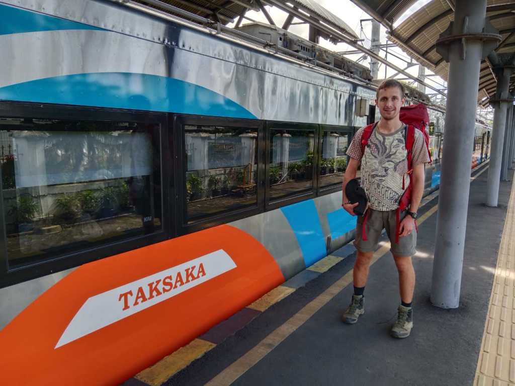 Ik nam de KAI-trein met de naam “Taksaka”. De naam Taksaka komt van de gigantische draak uit de hindoeïstische legende Mahabharata. In Indonesië zijn treinen genoemd naar bergen, historische koninkrijken of karakters van hindoeïstische verhalen, uit de regio’s waardoor de trein rijdt.