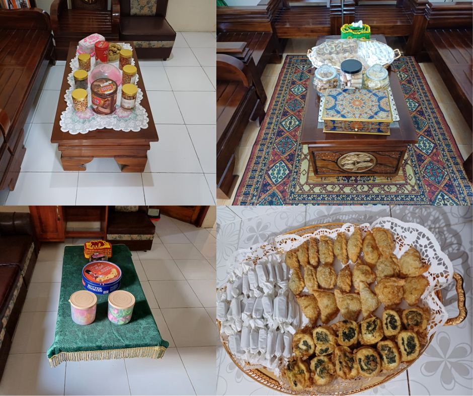 Bezoeken aan familie zijn typisch voor lebaran en hierbij krijg je telkens veel eten aangeboden. In elk huis zijn er bokalen of dozen met snacks, koekjes, snoepjes en fruit. Je kan dus de hele dag door eten bij elk bezoek.