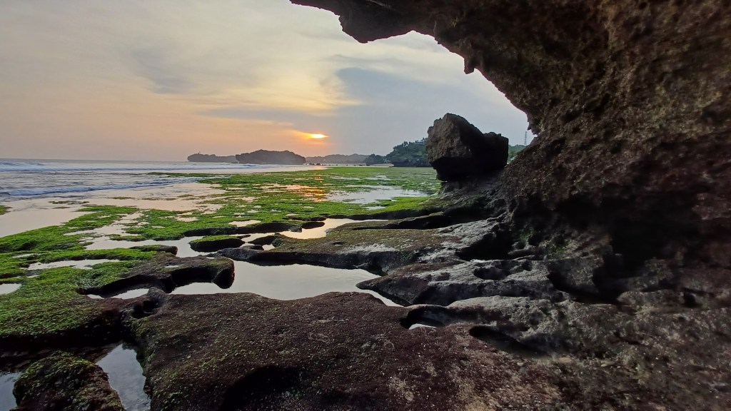 Na drie dagen in en rond de stad Yogyakarta rijden we naar het strand in het zuiden van de provincie Yogyakarta. Onderweg naar de kust stoppen we bij twee mooie plekjes in de natuur. We varen met een gids in een rubberbootje door de grot Goa Tanding en bewonderen daar de stalactieten en stalagmieten. Daarna frissen we ons op bij de waterval Sri Gethuk.