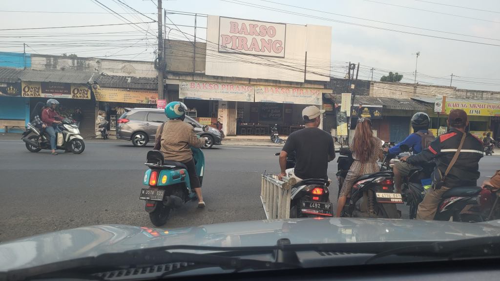 - Het verkeer is ook totaal anders dan in België: Heel chaotisch met motorfietsen en auto’s door elkaar. Je ziet ook heel veel vervuiling in het verkeer. Er is weinig plaats voor fietsers of voetgangers. Met drie of vier personen of met kindjes op een motorfiets is normaal. Indonesiërs zijn niet gewend om ergens te voet of met de fiets naartoe te gaan.