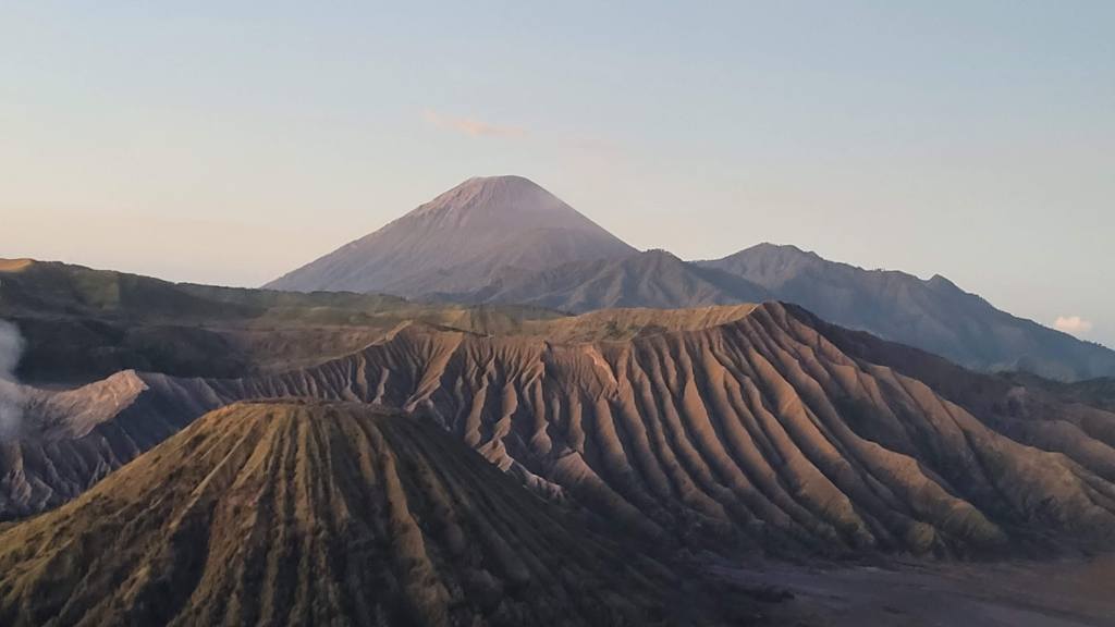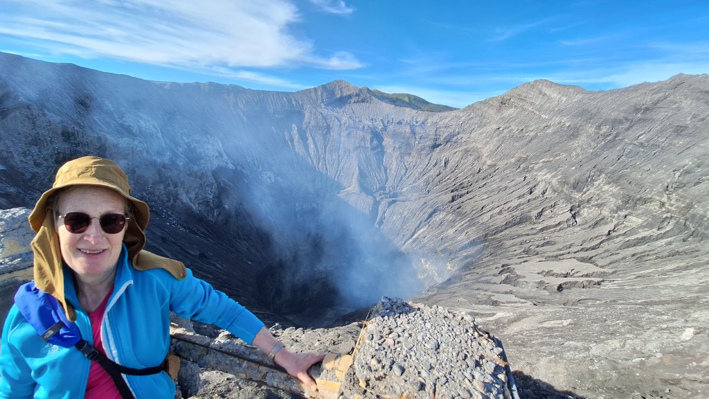 Na een vroege wekker zijn we met een jeep onderweg naar een uitzichtpunt voor zonsopgang. Omwille van de drukte op zondag én een onverwachte activiteit van het leger komen we in een lange file terecht. Onze chauffeur parkeert de jeep langs de weg en we wandelen verder in het donker omhoog naar het uitzichtpunt, de heuvel Bukit King Kong. Deze heuvel staat vol met toeristen maar bij zonsopgang is het uitzicht op de krater van Bromo indrukwekkend.