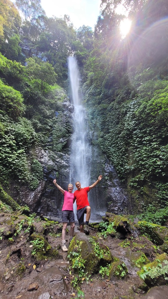 Ten noorden van de stad Yogyakarta trekken we op avontuur in de natuur van Kaliurang. We wandelen samen met een gids een fijne tocht door het Tankaman Natural Park. Dit natuurgebied ligt op ongeveer zeven kilometer van de actieve vulkaan Gunung Merapi. Mijn ouders zijn fervente wandelaars in Europa en ontdekken nu ook de grote biodiversiteit in de Indonesische natuur. Onze gids vertelt dat veel natuur volledig verbrand was door de grote uitbarsting van Gunung Merapi in 2010 maar ondertussen is het park opnieuw snel gegroeid.